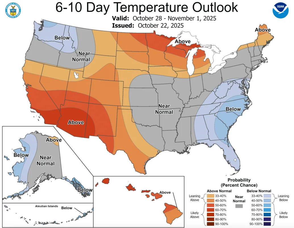 По прогнозам Национального управления погоды в Дулюте, в четверг в северо-западной части Висконсина возможны смешанные осадки в виде снега и дождя. Тем не менее, по данным Национальной океанической и атмосферной администрации (NOAA), миннесотцам, возможно, придется потерпеть, прежде чем увидеть больше снега. Прогноз показывает высокую вероятность аномально теплой погоды, которая продлится, как минимум, до начала ноября.